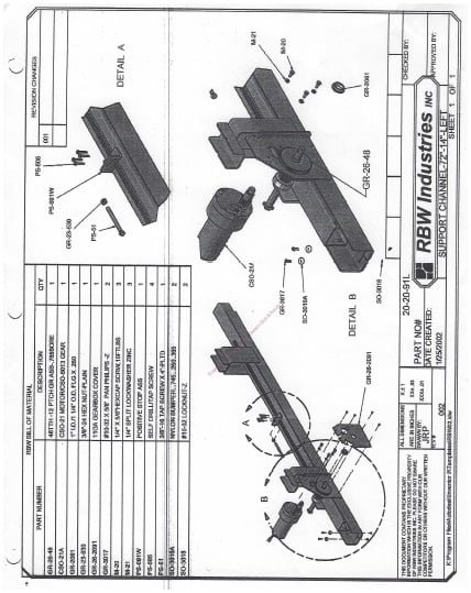 RBW Industries Support Channel 72″ – 14″ w/Motor Detail & Parts List