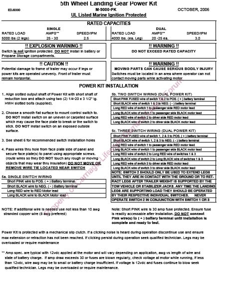 Ventura Fifth Wheel Landing Gear Power Kit Manual